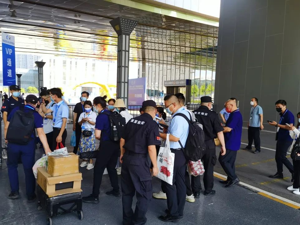 為做好此次展會的安保工作,按照當前疫情常態化防控政策和“控總量、防聚集、保安全”的總體要求,南京市保安服務有限公司超前謀劃、精心部署,安排大型活動部負責人提前勘查現場,結合現場可能出現的突發情況與各單位協調,逐一對安保工作細節及可能存在的問題進行分析研判,制定了詳細的應急保障方案。由于展會期間正值高溫酷暑,公司提前為執勤保安隊員準備防暑慰問品,調整外場執勤人員輪換班次,以防隊員中暑。